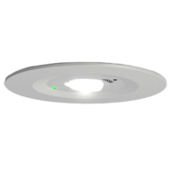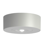Quadratische Deckenaufbaubatterieleuchte mit asymmetrischer Optik bis 4,5m Montagehöhe, LED-Versorgung.