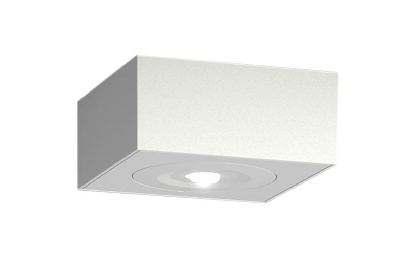 Eckige Deckenaufbauleuchte mit asymmetrischer Optik bis 4,5m Montagehöhe, LED-Versorgung.