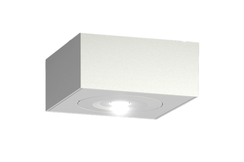 Quadratische Deckeneinbaubatterieleuchte mit symmetrischer Optik bis 4,5m Montagehöhe, LED-Versorgung.