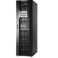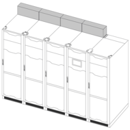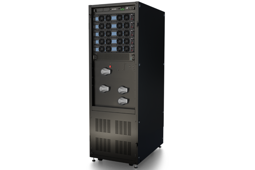 Freistehender Schrank als modularer Aufbau bis 120 kW mit Power Modulen bis zu 4+1 M2X 30 PM BLUE oder 5x M2X 15 PM / PM BLUE (nicht im Lieferumfang enthalten) ohne Batteriefächer eingebaut. Einheit komplett mit Bypass-Modul und Haupteingangs-/Bypass-/manuellen Bypass-/Ausgangsschaltern.