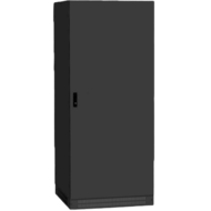 Frei stehender Schrank als modularer Aufbau bis 100 kW mit Power Modulen bis zu 4 x MPX 15 PM oder 4 x MPX 25 PM (nicht im Lieferumfang enthalten) + 6 Akkufächer. Einheit mit Bypass-Modul, Akkuschalter und Anschlussfeld.