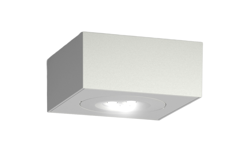Eckige Deckenaufbauleuchte für starke tiefstrahlende Flächenausleuchtung bis 8,0m Montagehöhe, LED-Versorgung.