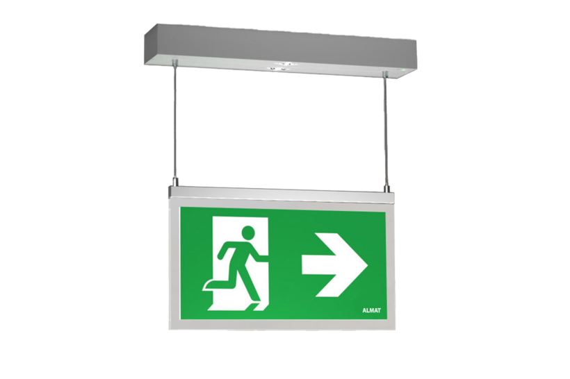 Deckenaufbaumontageset mit Sicherheitsleuchte (nicht separat schaltbar), inkl. LED-Versorgung, ohne Piktogramm.