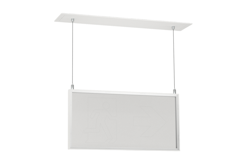 Deckeneinbaumontageset mit zweiseitigem transparenten Piktogrammen, inkl. LED-Versorgung. Pfeilrichtung muss definiert werden.