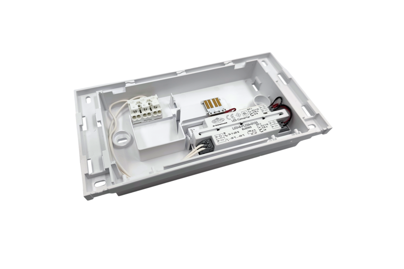 Wandaufbaumontageset, Piktogramm mit zusätlich integriertem und schaltbarem Sicherheitslicht, inkl. LED-Versorgung, ohne Piktogramm.