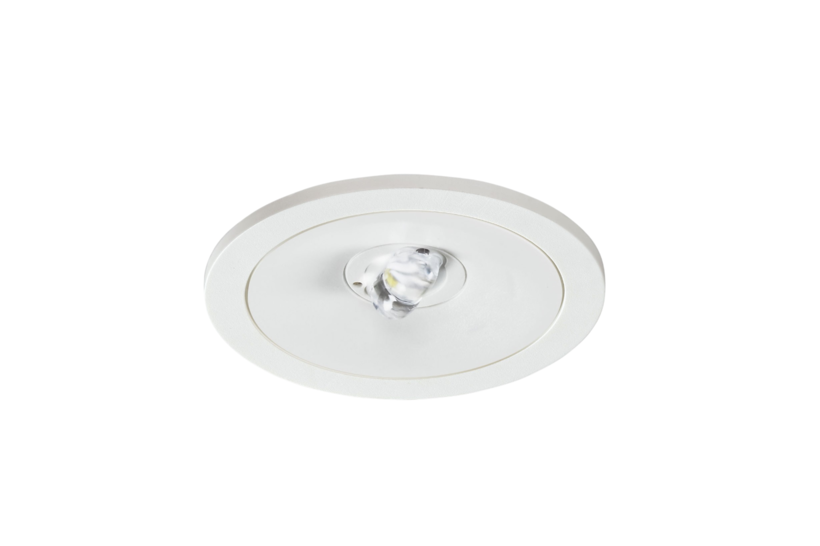 Runde Deckeneinbaueinzelbatterieleuchte für Flächenausleuchtung mit symmetrischer Optik passend für Betoneinbaugehäuse HaloX®.