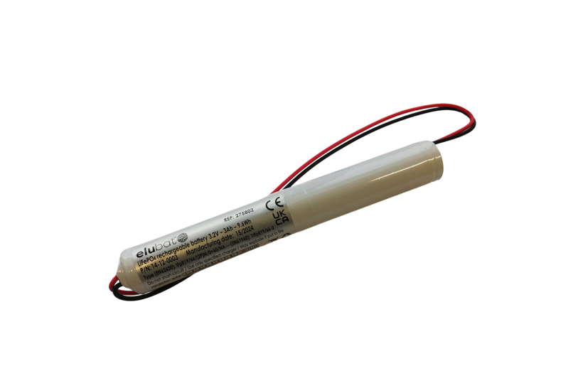 Lithium-Eisenphosphat (LiFePO4) Akku, 3Ah, Hochtemperaturzellen 5 bis 55 °C, Format 18650 in Stabanordnung, Verbindungskabel mit verpolungsgeschütztem JST-EH-Stecker.