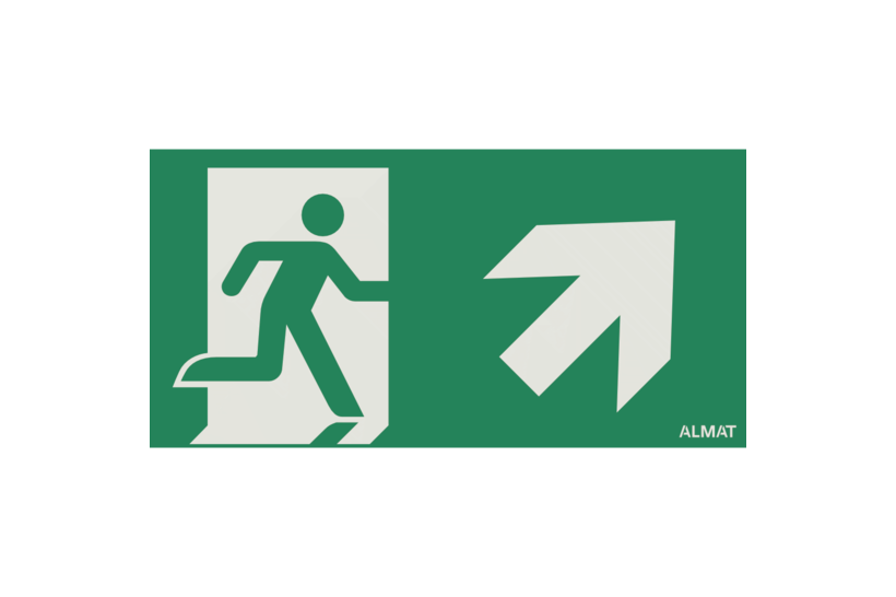 Piktogramm Einlegefolie für CrystalWay 19x22 Pfeil rechts oben (PRO), ISO7010, Erkennungsweite 30m, mit ALMAT Logo.