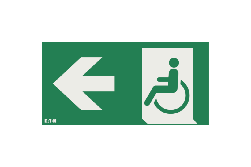 Piktogramm Einlegefolie für FlexiTech Pfeil links Notausgang für nicht-gehfähige oder gehbeeinträchtigte Personen, ISO7010-E026, Erkennungsweite 30m.
