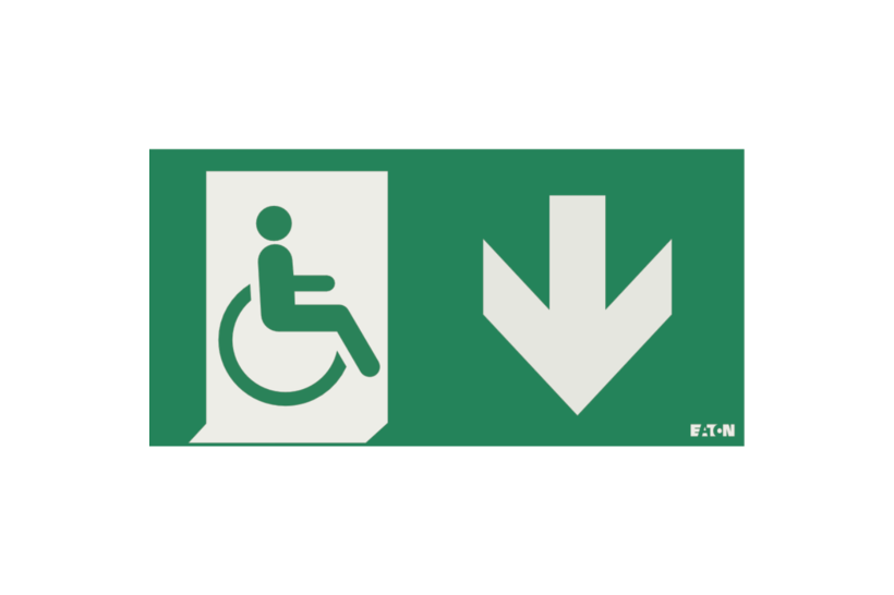 Piktogramm Einlegefolie für FlexiTech Pfeil unten Notausgang für nicht-gehfähige oder gehbeeinträchtigte Personen, ISO7010-E030, Erkennungsweite 30m.