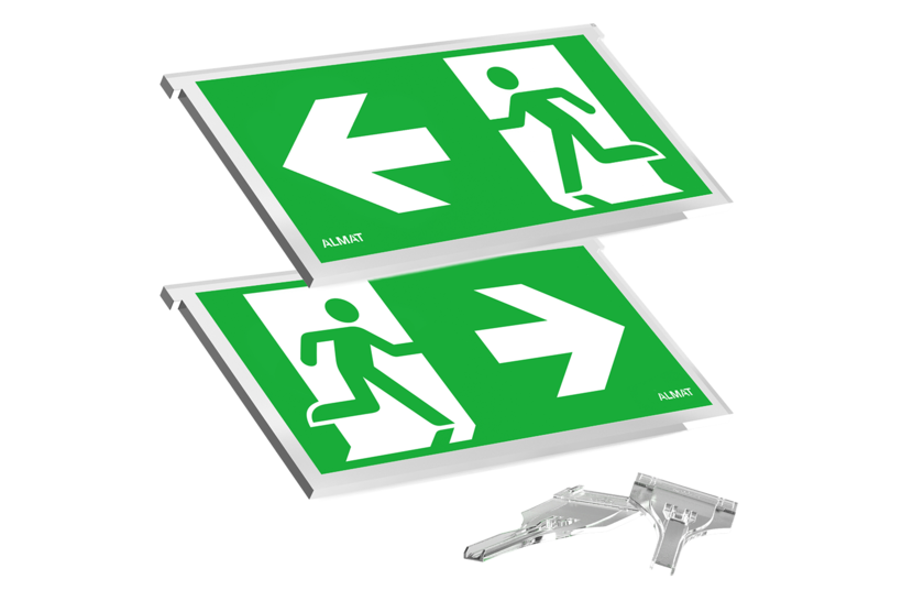 Piktogrammscheibe Pfeil links/Pfeil rechts gem. ISO 7010 für hängende Montage, Erkennungsweite 32 m, Ausleuchtung gem.EN 1838