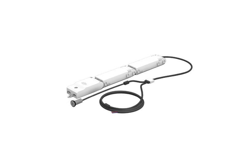 Versorgungselektronik AT-Aussenleuchten für abgesetzte Montage. Dreiteilig gegliedertes Gehäuse, im Gelenk 45° knickbar.